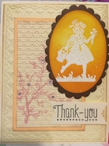 Hi, today I made this Thank you card using Stampin up’s Blessed Easter stamp. This stamp is retired but I love the cherry blossom and the little girl image. I stamped the cherry blossom and dry embossed the image using Stampin up’s square lattice embossing folder. The back panel is also embossed with framed tulips embossing folder. The girl image was stamped with versamark and heat embossed using white embossing powder and was sponged so the image pops out. I hope you enjoyed this card and Thank you for visiting my blog!