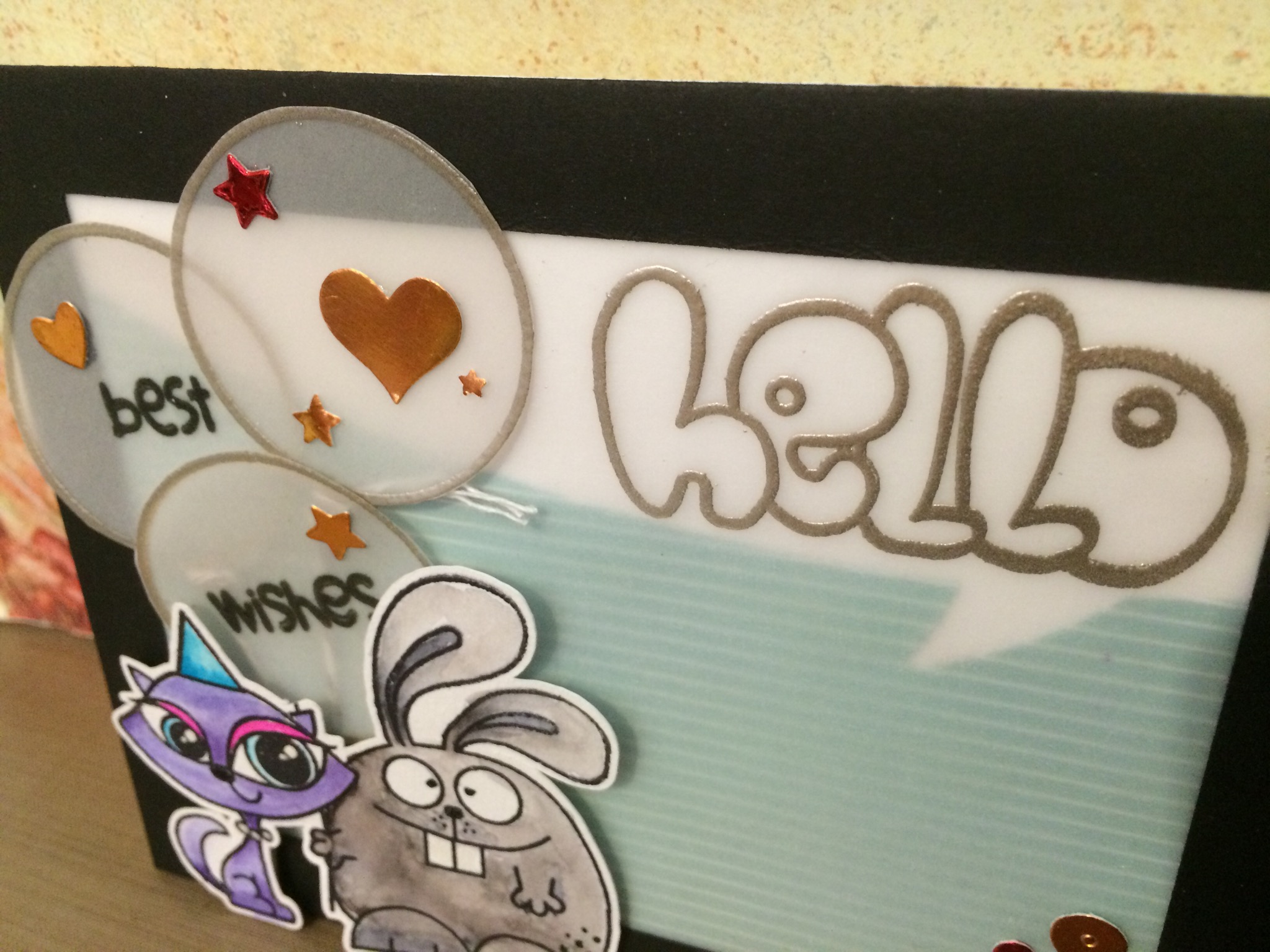 Today I’m sharing with you this card I made for the Paper Smooches December Guest Designer Search. Paper Smooches is one of my all time favorite stamp company. They have such cute stamps and I like their dies too because they make it do affordable. I made this card using the stamp set Word Up and Party Pals. I cut out the vellum at 51/4×4 and also cut out a black frame and attached it together. I also cut out a design paper with blue and white stripes I had in my stash and a white card stock the same size. I then used Lawn Fawn’s speech bubble die and cut a portion off from the top so my sentiment I stamped on vellum will show up better. I embossed the vellum with the Hello bubble word from Word up and embossed it using Ranger’s liquid Platinum. I also stamped 3 balloons using the Party Pals and embossed it the same embossing powder and cut it out. I stamped out the image from Party pals and cut the balloons off and decided to watercolor using my peerless watercolors. I’ve never used these since I made the swatch and it took a little time to get use to it. I didn’t give too much depth and dimension with using this watercolor. I guess I need to play around with it more to control the colors more,lol. Anyways, I strung up the balloons using some bakers twine and attached all the layers together putting foam adhesive on the main image. I stamped out the words best wished on the vellum balloons with clear after stamping it with Versafine Onxy ink. I attached some sequins and hearts I cut out using the Mama elephant confetti die and used black jelly pen on their eyes and some other places to give more interest. It didn’t turn out as I envisioned but it turned out ok. I hope you like this and please leave leave a comment if you like this video and subscribe for more inspirations and ideas. Thank you so much for visiting:) Much Mahalo
