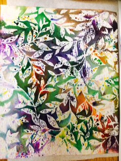 These were created, using some stencils.  I got 2 different looks with using only 1 stencil.  I used the powders on top of the stencil to get a mono print, giving me these 2 different looks.