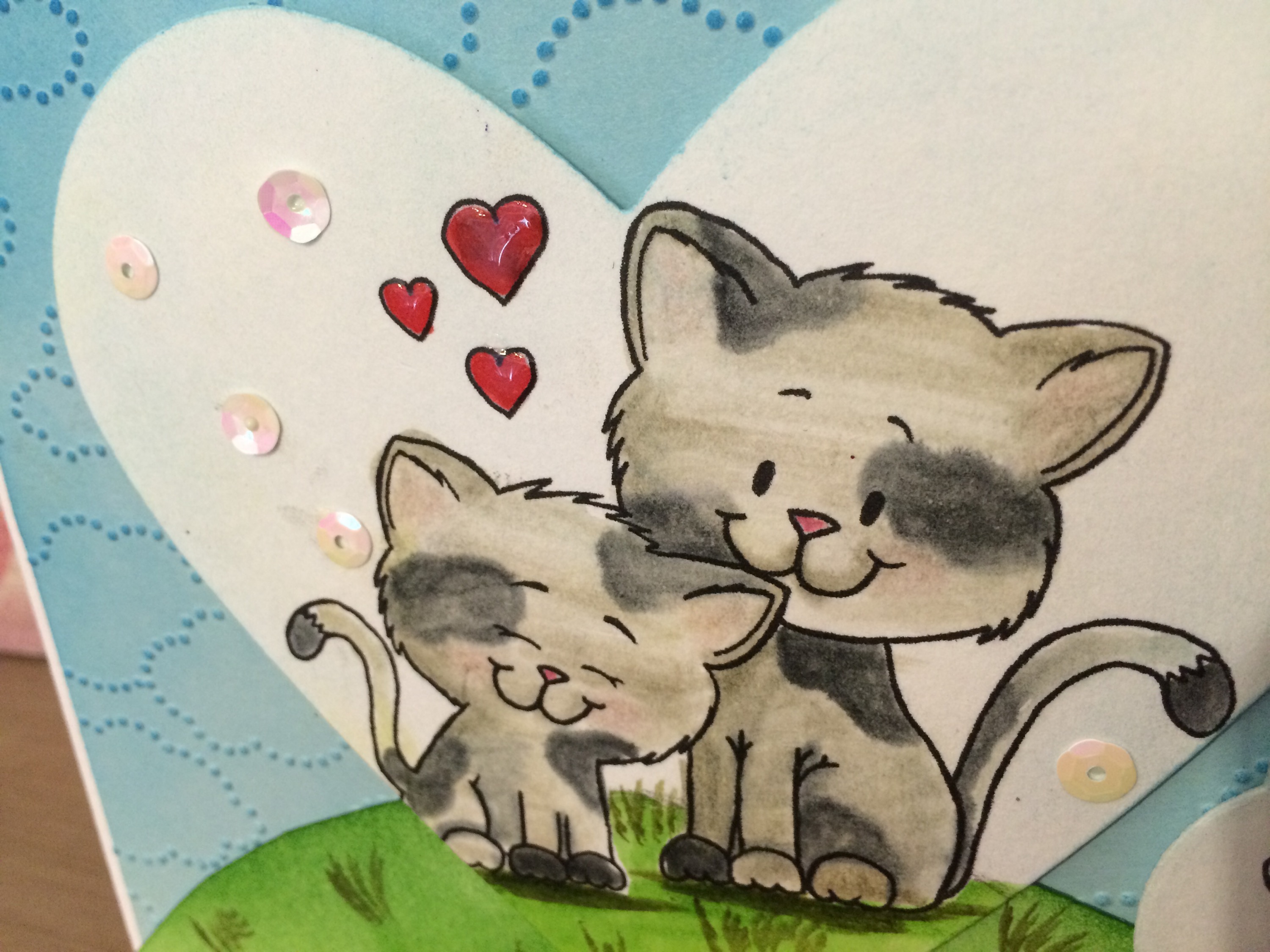 Today I want to share with you a card I made using these adorable Kittens in Love.  This is a Gerda Steiner Designs Digital image and I absolutely love this.  I’ll leave a link below if you like to check it out.  As most of you guys know, I was lucky enough to be on Gerda Steiner Designs DT so I do get Physical and Digital stamps from Gerda to Create projects for her.  However, I LOVE her stamps!!  Not because I’m on the DT but because I Love her adorable, whimsical stamps.  I was using her stamps way before I was asked to be on the team.  So even though I create a lot of projects using her images, it’s because I want to NOT because I have to.