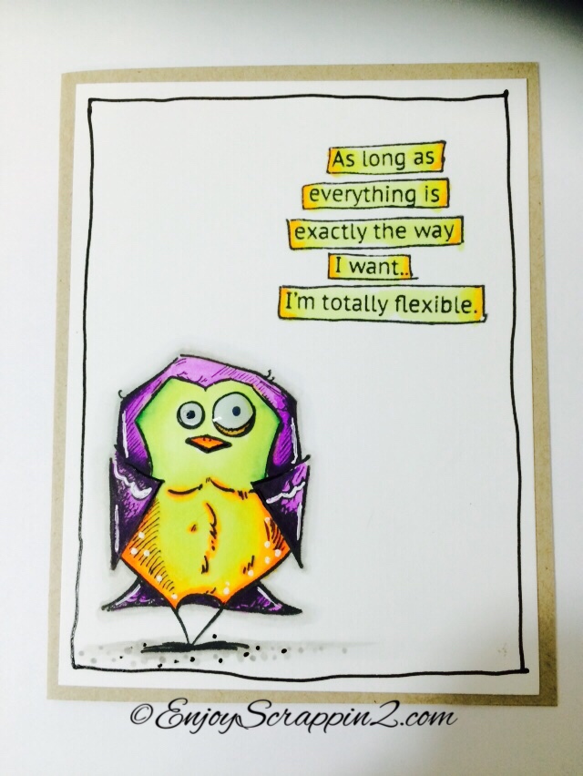 For todays card, I decided to use this Bird Crazy stamp set from stampers anonymous.  I think these birds have the funniest expressions and each bird has their own personality which I love.  I stamped it out using My favorite things black licorice hybrid ink on Neenah solar white card stock and chose out several colors to color the birds.  I made this bird very colorful since this was a very simple card.  I found this very funny sentiment to go along with these birds from the Dylusions stamp set from my stash.  To see a full step by step on how I made this card, please watch the video up above or head on over to my youtube channel.  For all the supplies I used on this card will be in the description below. I thank you guys so much for stopping by and please subscribe and follow for more inspirations and ideas.  I’m super excited that Tupelo Designs LLC is carrying copic markers and I’ll be sharing more products using these markers in the future.  Thank you so much and I hope to see you back next time.