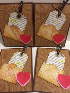 I made a masculine valentines card using kraft card stock with Stampin up wood grain stamp, embossed in brown. I also made a small pocket to fill it with tags and highlighted words that represents valentines. I hope you enjoyed this card and if you have any questions, please leave a comment and I’ll respond. Thank you for visiting my blog >