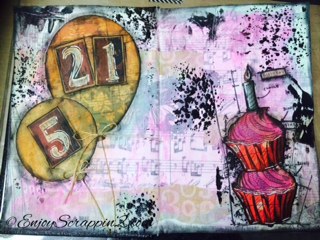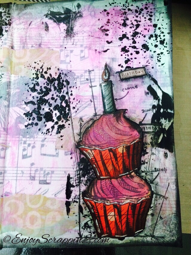 I cut out the Balloons and also used 2 cupcakes as my Focal points and I just started the process from there. Â Once I decided on my focal images, it was pretty easy from there. Â Unlike card making, I didn’t have to worry about the recipient liking the card I made for them so this was more on the Freestyle. Â It was so much fun making it that I think I want to make another one already, lol. Â By the way, this art journal style was highly inspired by Vicky from Clipncuts. Â I’m sure you guys have seen her Amazing work and I’ll leave a link below to her channel below if you want to check it out. Â She does Stunning work and I learned a lot from her in both card making and Art journals.